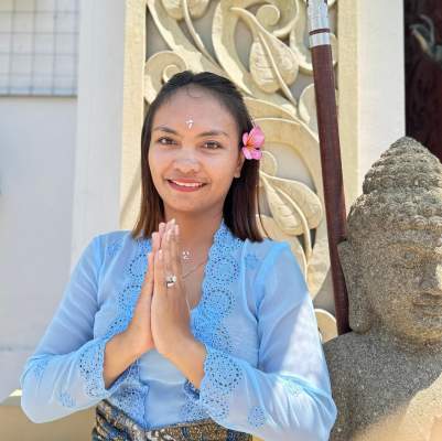 Putu Maryam, founder of Floating Leaf. Her roots trace back to The Balinese Royal Family of Karangasem. Raised with traditional dances, healing arts, and Balinese culture, Putu brings authenticity to your experience.